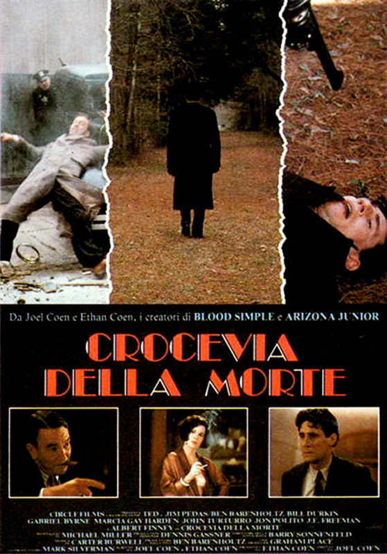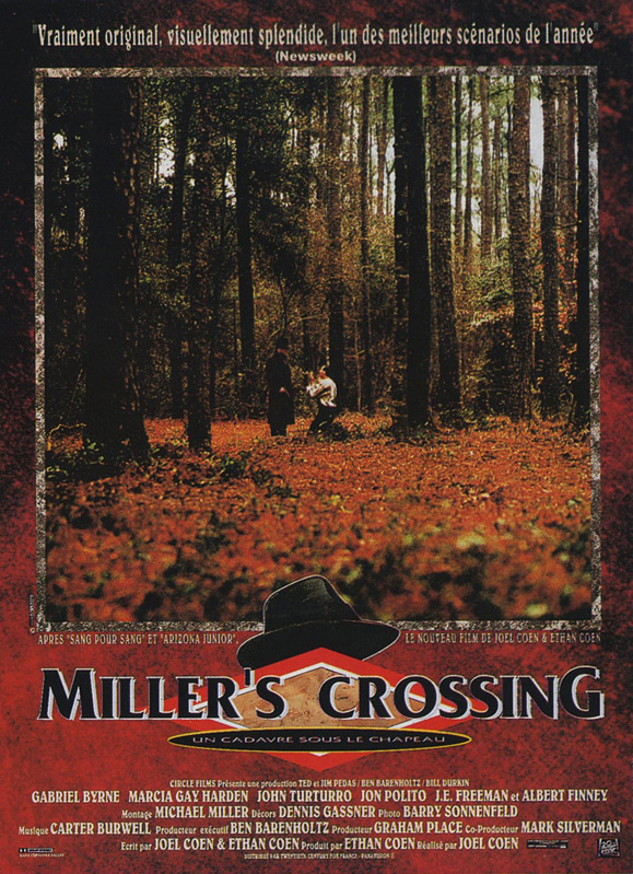 Joel and Ethan Coen's third collaboration, the gangster film "Miller's Crossing", stars Gabriel Byrne as Tom Reagan, the right-hand man of big-city Irish mob boss Leo (Albert Finney). The film opens with Italian mobster Johnny Caspar (Jon Polito) and his second in command Eddie Dane (J.E. Freeman) informing Leo and Tom that they are going to kill bookie Bernie Bernbaum (John Turturro) because he has been revealing Caspar's fixed fights to other gamblers. Leo informs Caspar that Bernie pays for protection and is not to be touched. After the Italians leave in a huff, Tom informs Leo that he should give up Bernie. Tom and Leo are both involved with Verna (Marcia Gay Harden), Bernie's sister. After a failed hit on Leo starts a full-scale mob war, Tom reveals to Leo the truth about his relationship with Verna. This leads to a falling-out between the pair. Tom goes to work for Caspar, but in truth, he is still loyal to Leo. Tom figures out how to manipulate all of the situations so that Leo survives, but this may cost Tom his relationship with Verna.